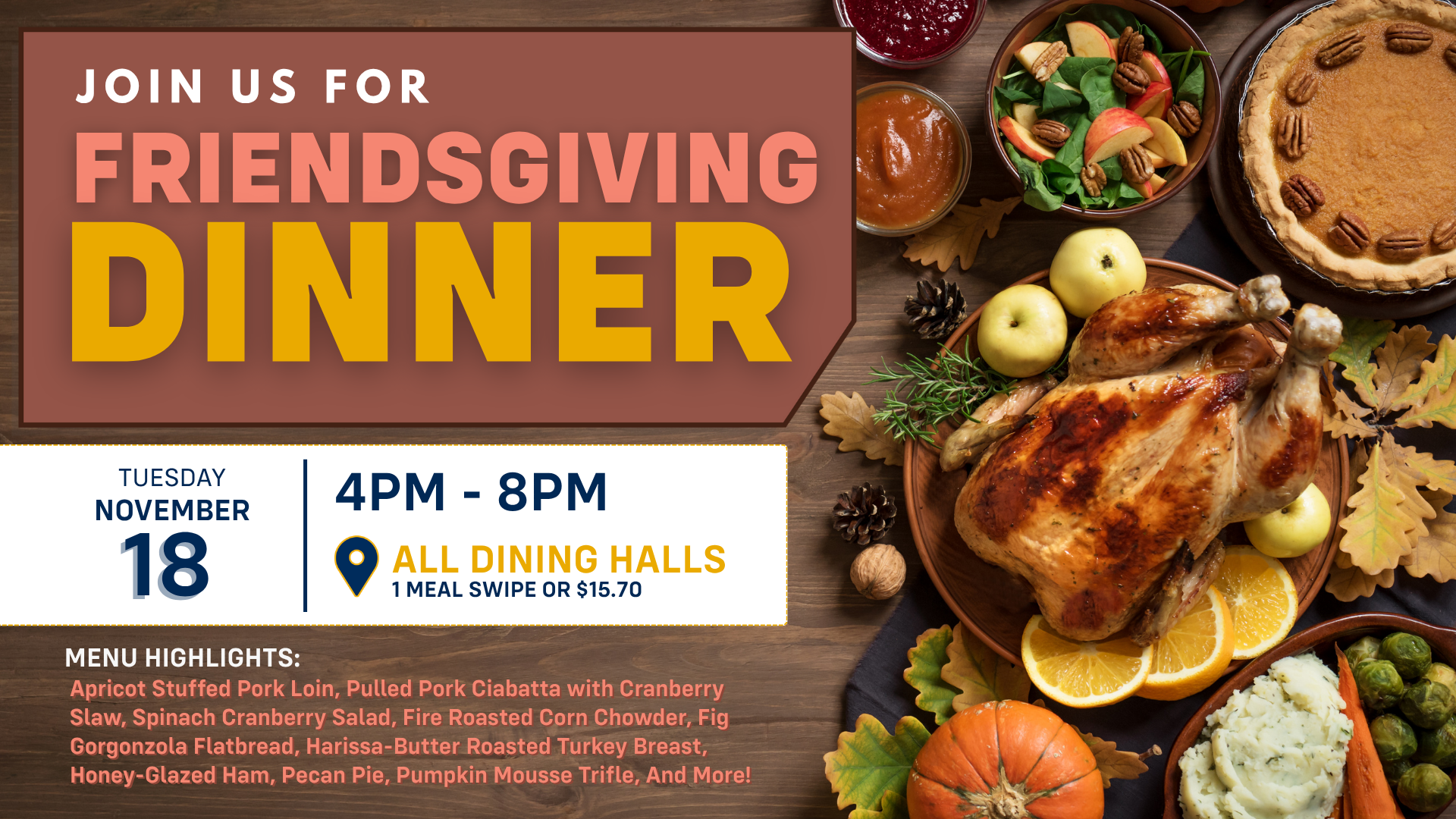Get ready to gather ’round and give thanks for our amazing friendship! Join us for a special Friendsgiving Dinner where the food is plentiful and the company is even better.